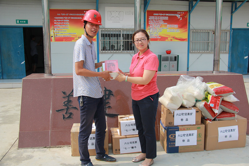 2016年送清涼活動與以往不同的是,六公司工會把這項常規(guī)工作做出了新意,工會主席趙尤蕾帶領(lǐng)黨工部、工會工作人員,黨群聯(lián)動,“三送進(jìn)項目”。除了送清涼,同時也要送知識、送指導(dǎo)。